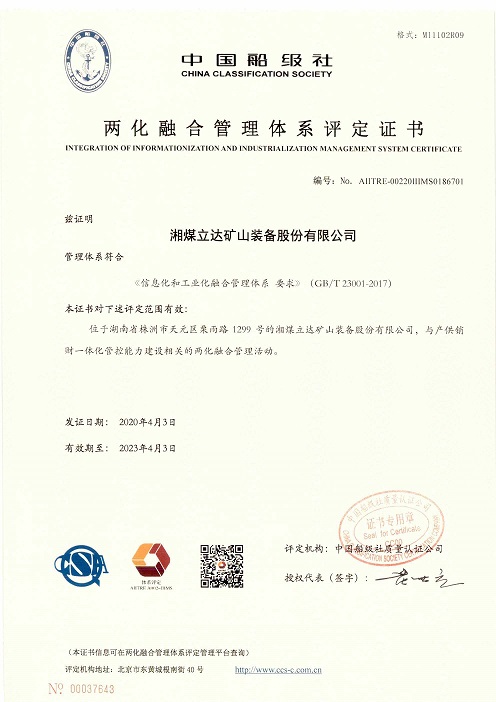 本网讯(张文娟报道)2020年4月3日,公司顺利取得国家工信部颁发的“两化融合管理体系评定证书”,标志着公司工业化与信息化融合迈上了新的台阶。